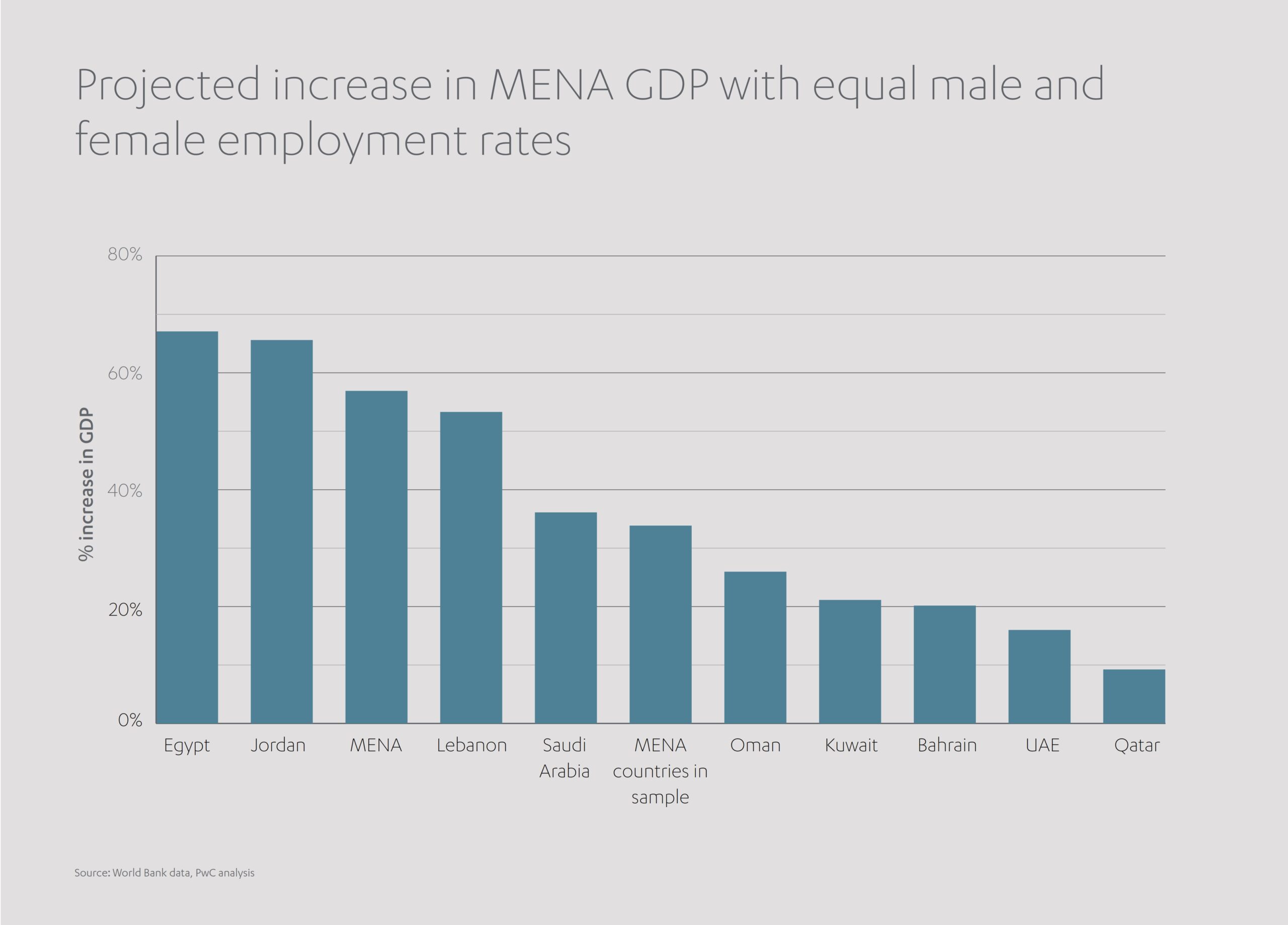 Again, we all pay the financial consequences. One study found that lifting the female employment rate to match the male employment rate could provide a 57% lift to the MENA region’s GDP.[12]